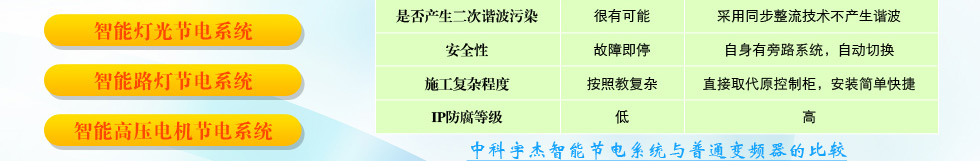 為此中科宇杰公司向社會推出節(jié)能環(huán)保先進技術與高效服務模式的概念。擁有了八大體系節(jié)電系統(tǒng)和完善的節(jié)能服務杰節(jié)模式,為企業(yè)進行節(jié)能改造能夠穩(wěn)定的達到節(jié)電需求。下面中科宇杰來分別介紹下公司的八大節(jié)電系統(tǒng)和各自的特點:(如下圖)