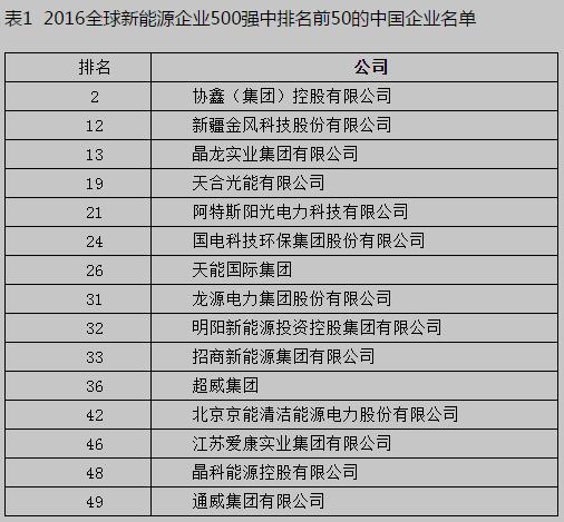 根據(jù)2016全球新能源企業(yè)500強名單,2016年500強上榜企業(yè)最低營業(yè)收入再邁上一個新臺階,達7.58億元人民幣。500強企業(yè)的總營業(yè)收入首次突破3萬億元人民幣,達到30666億元人民幣。與此同時,中國企業(yè)在企業(yè)競爭力、產(chǎn)業(yè)鏈完整性上全面、快速發(fā)展。