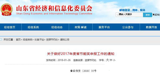 山東省啟動組織開展2017年度省節(jié)能獎申報工作