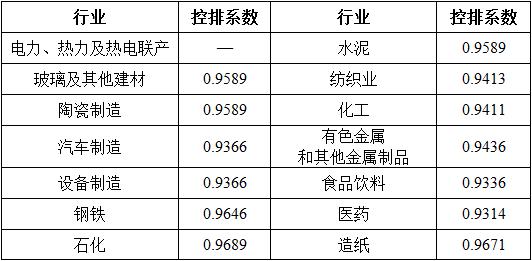 行業(yè)控排系數(shù)(具體數(shù)值見附件1-1)是用于核定企業(yè)既有設(shè)施排放配額的參數(shù)。依據(jù)各行業(yè)減排成本、減排潛力、行業(yè)競(jìng)爭(zhēng)力、各行業(yè)碳排放歷史變化趨勢(shì)等因素綜合測(cè)算確定。