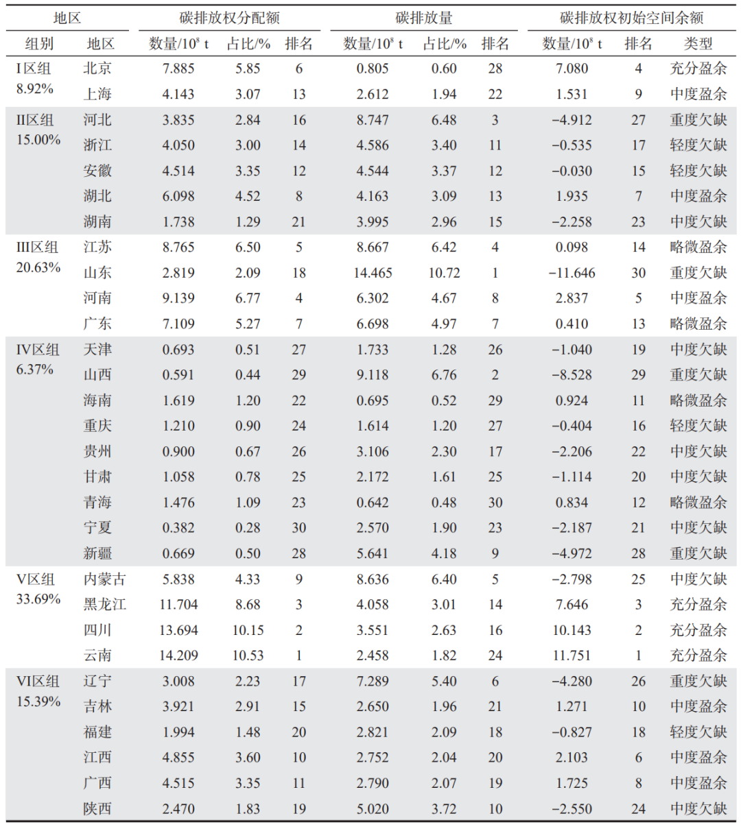 3.1中國碳排放權區(qū)域分配及初始空間余額