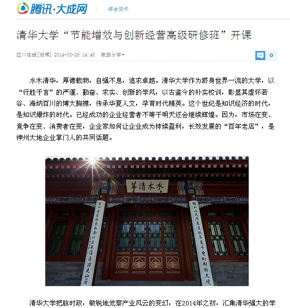清華大學(xué)“節(jié)能增效與創(chuàng)新經(jīng)營高級(jí)研修班”開課