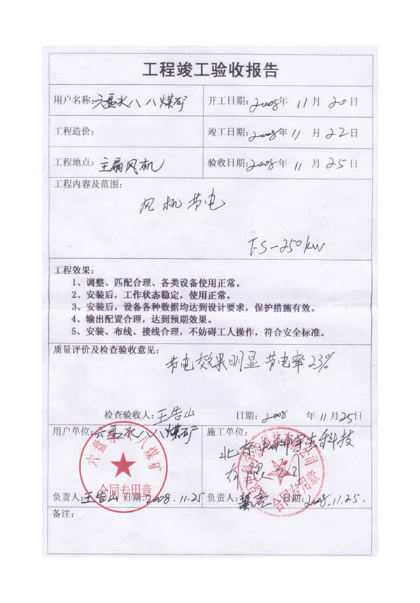 經(jīng)過嚴(yán)格的測試和同期的用電對比,節(jié)能效率達(dá)到23%,投資回報(bào)期一年,節(jié)能效率和投資回報(bào)期都超過了煤礦領(lǐng)導(dǎo)的預(yù)期。八八煤礦由此得到客觀的經(jīng)濟(jì)效益和社會(huì)效益。