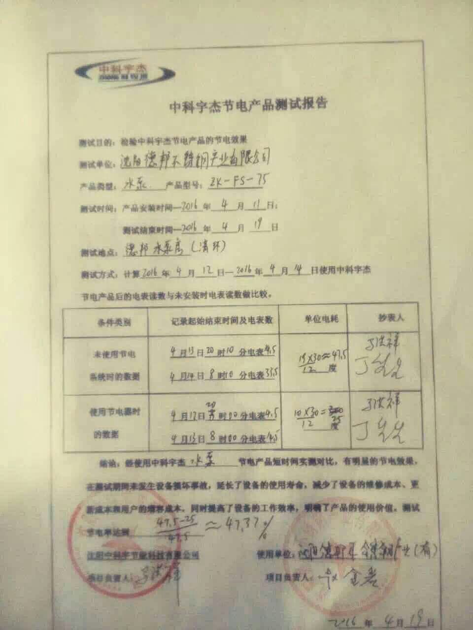 安裝調試驗收,節(jié)能效率高達47.37%。節(jié)能設備安裝后,不但完全沒有對原設備造成不良的影響,還起到了延長設備壽命,減少維修成本的作用。該項目試點工程的節(jié)電效果顯著,得到了企業(yè)領導的一致認可。